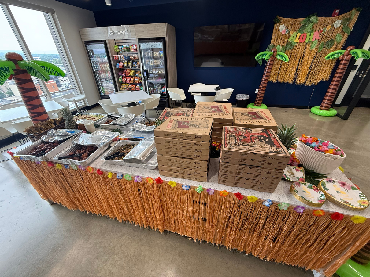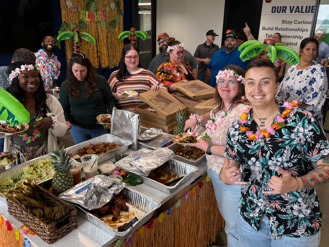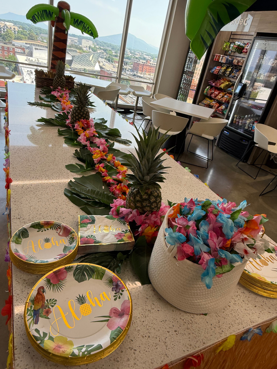 Employees in the Roanoke office enjoyed a Summer Luau Party, and it was a blast from start to finish! The breakroom was transformed into a Hawaiian paradise, featuring vibrant island décor that set the scene for a fun and festive celebration and pizza and wings.