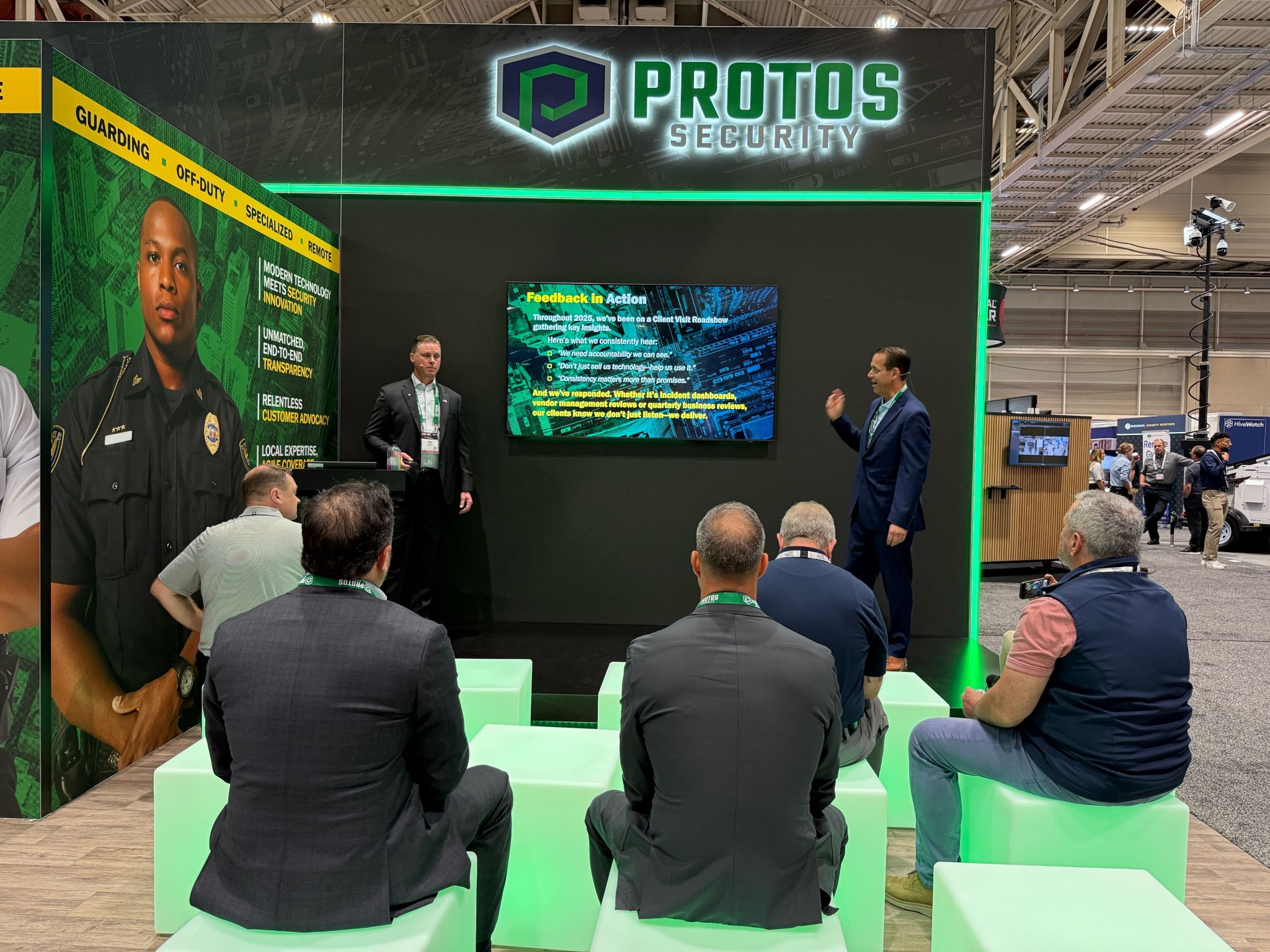 The “Protos Presents” Stage in our booth drew crowds with live demos, thought leadership sessions and quick-hitting industry insights, showcasing how Protos is redefining what it means to deliver modern, data-driven and scalable security solutions.