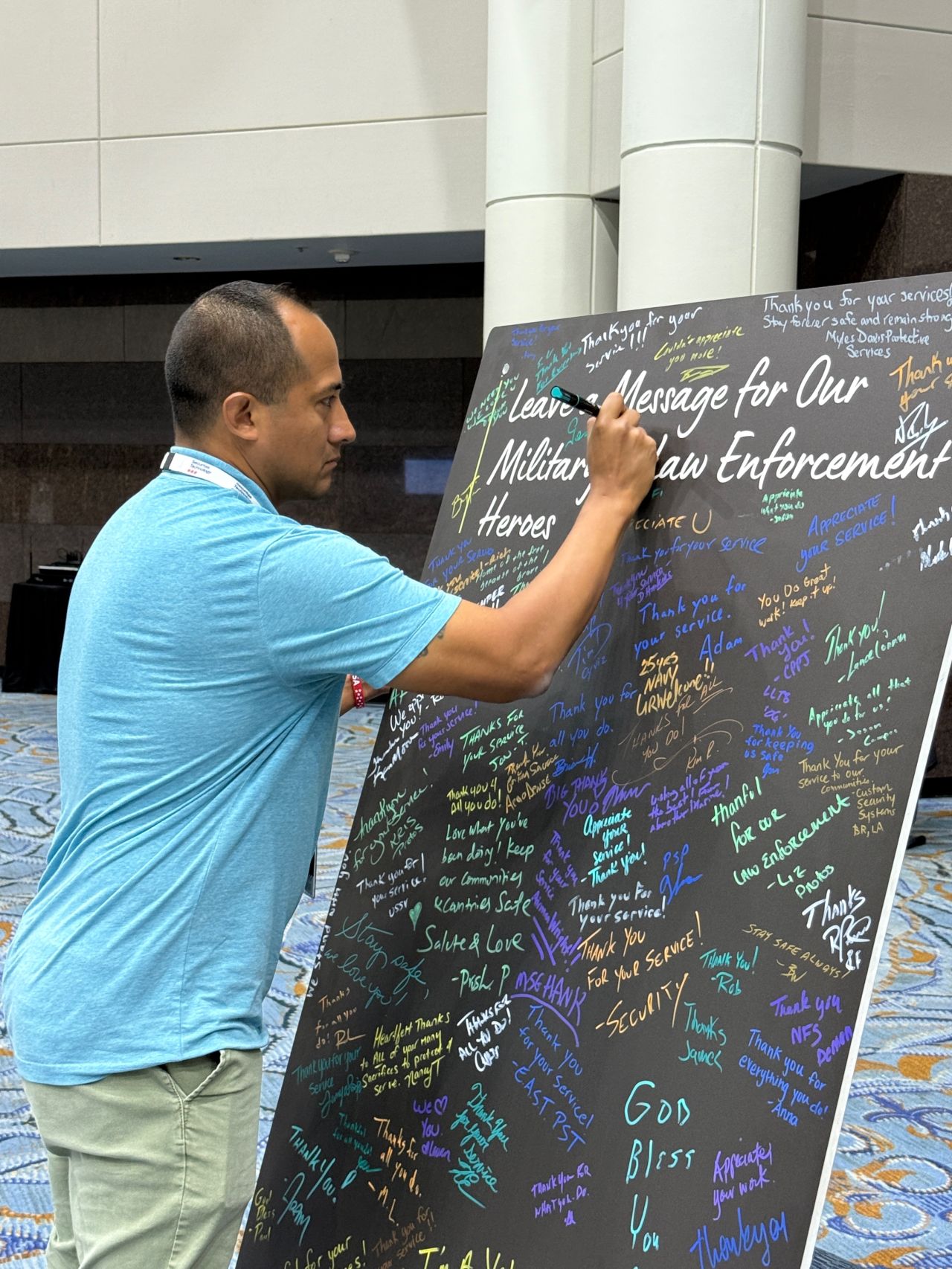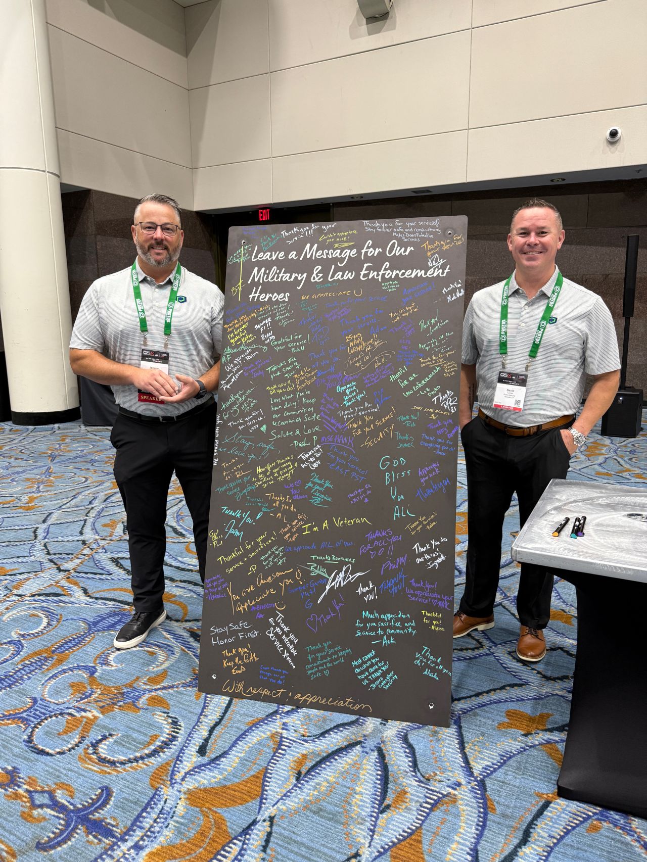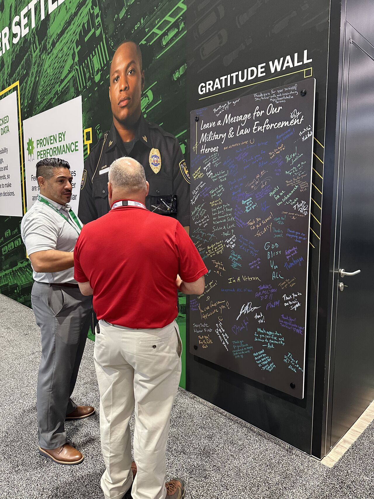 Attendees engaged with our Innovation Wall, where they shared challenges and ideas for shaping the future of security, as well as our Gratitude Wall, where visitors left messages honoring military and law enforcement heroes.