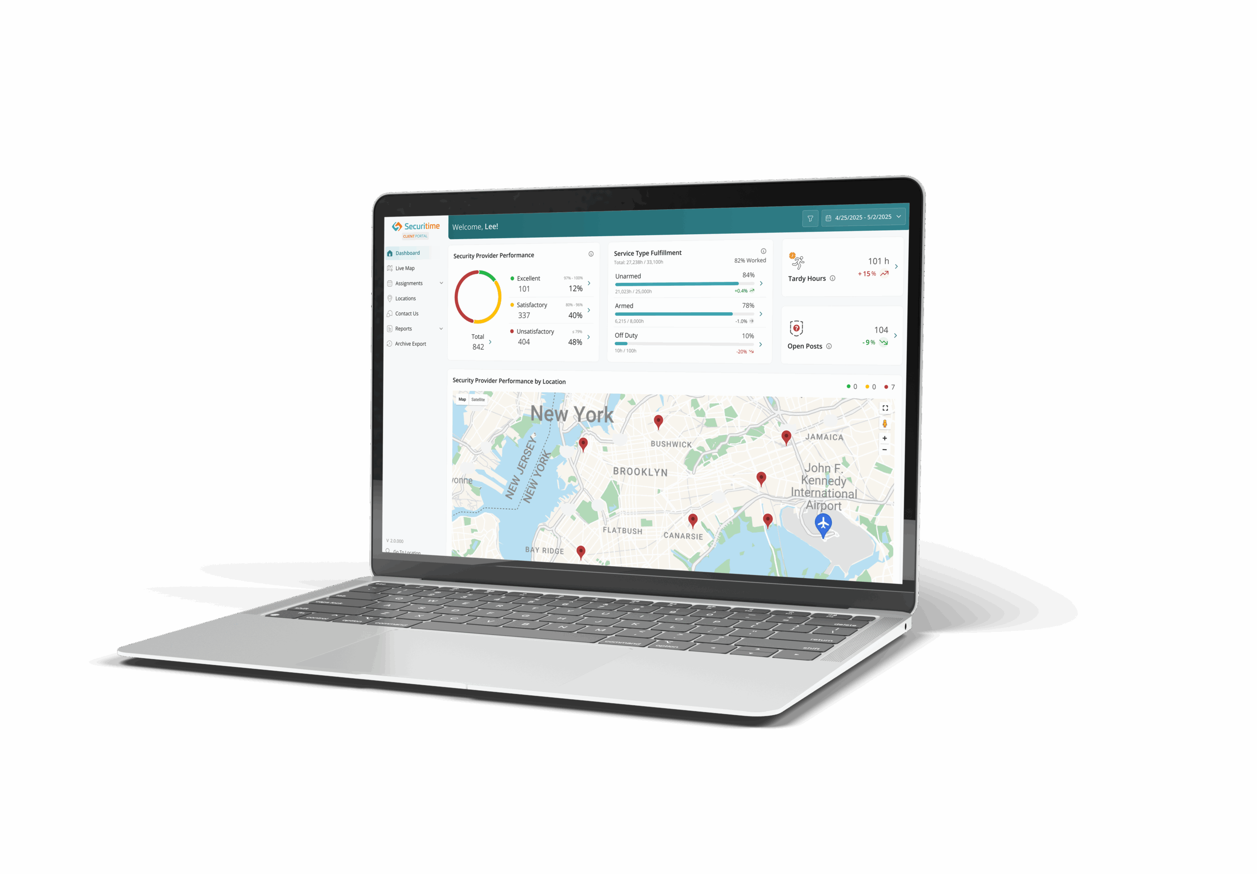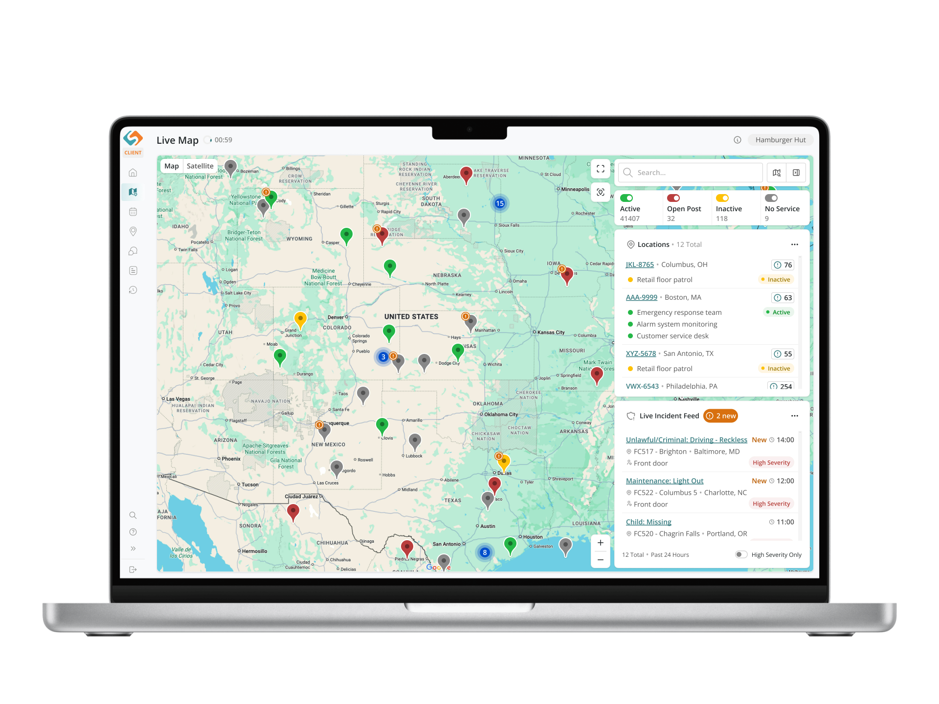 The Live Map Dashboard, a completely new feature, provides rapid refresh updates, bringing situational awareness to the forefront. Clients can now monitor their locations across the country, view live updates on site statuses and quickly identify high-severity incidents or open posts.
